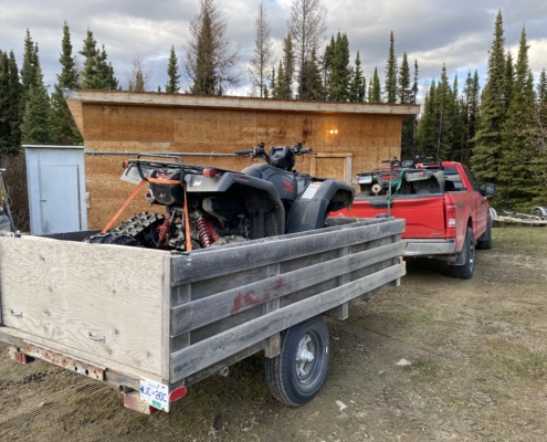 Indkvarteringen er sammenlignet med meget andet i Canada af virkelig høj standard. Campen består af en mainlodge med køkken, spiseafsnit og hyggelig pejsestue med bløde møbler. 4 små hytter bruges til soverum og de er indrettet med 2 enkeltsenge i hver samt en lille gasovn hvis natten bliver for kold. Man medbringer selv sovepose samt oppustelig hovedpude.Toilet besøg klares for det meste i ”det lille skur” med kemisk toilet men der forefindes også et toilet i mainlodgen med træk & slip. Der er et fint badehus med bruser og masser af varmt vand.